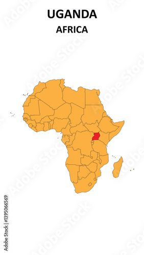 Uganda Map is highlighted on the Africa with detailed state and region outlines.