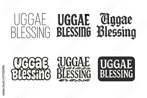 Uggae Lettering Variations. Uggae Blessing. Set lettering. harmonious lettering variations of the same emblematic concept, each with different artistic
