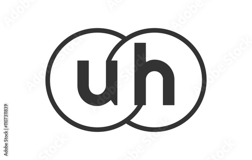 UH business company emblem with outline rounds and letters u h. Logo template of two merged circles for brand identity, logotype. Vector Infinity symbol