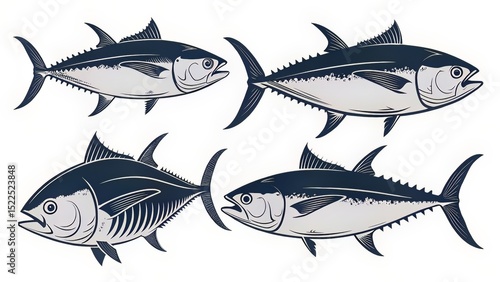 Ukiyo-e Inspired Black-and-White Tuna Leaping from Stylized Waves