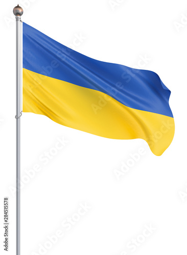 Ukraine flag blowing in the wind. Background texture. 3d rendering; wave. Isolated on white. Illustration.