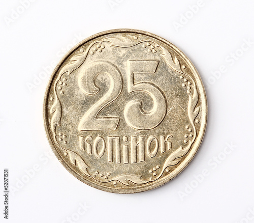 Ukrainian money isolated. 25 kopek coin. Reverse