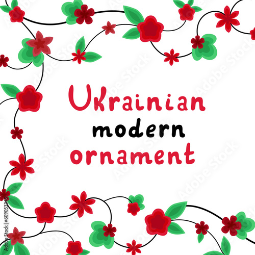 Ukrainian ornament. Bright decorative ornament with flowers in the Ukrainian folk style. Ukrainian art. Folk art print design. Vector illustration.