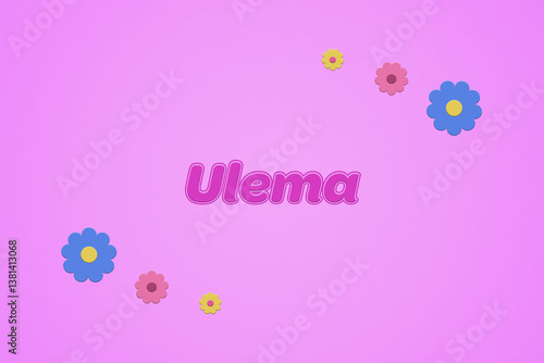 Ulema female girl name illustration in pink with blossoms, flowers