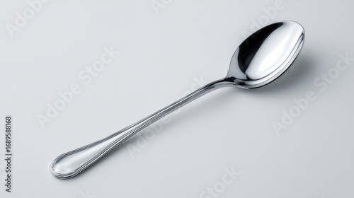 Ultra quality image of elegant silver spoon isolated on white, showcasing smooth curves and reflective surface.