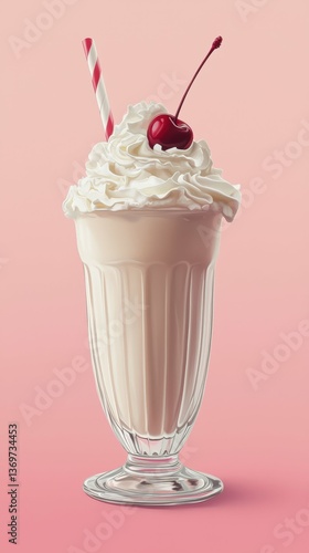 Ultra Realistic Milkshake with Cherry and Whipped Cream Detail