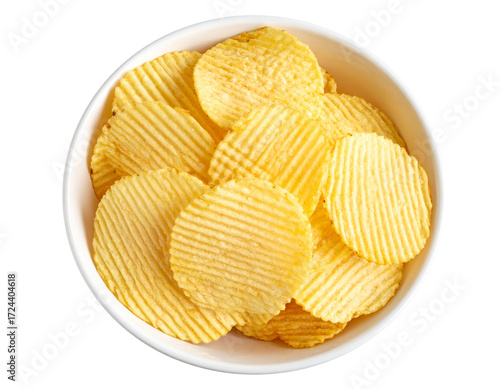 Ultra-detailed 8K PNG of perfectly shaped potato chips arranged in a clean white cera 538033