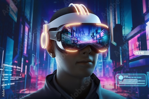 Ultra-Realistic 3D Render of a Person Exploring the Metaverse with Advanced VR Headset
