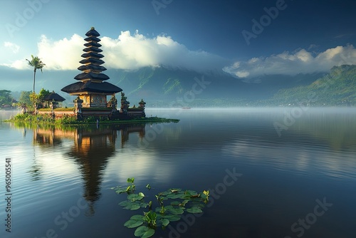 Ulun Danu Beratan temple at the edge of Lake Bratan, Bali, Indonesia , ai
