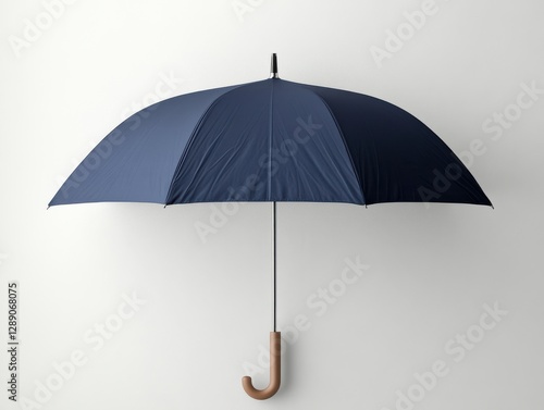 Umbrella mockup A blue umbrella with a wooden handle, displayed against a light background, symbolizing protection from rain.