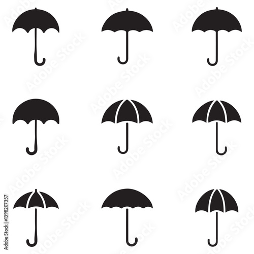 Umbrella simple icon set. Umbrella. Vector Black silhouettes illustration. with white background