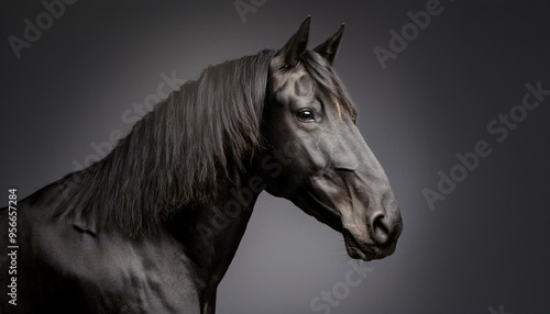 UN caballo realista. El modelo del caballo se representa con una textura de pelaje negro