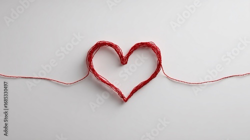 Un cuore rosso, formato da fili, è posto su uno sfondo bianco.
