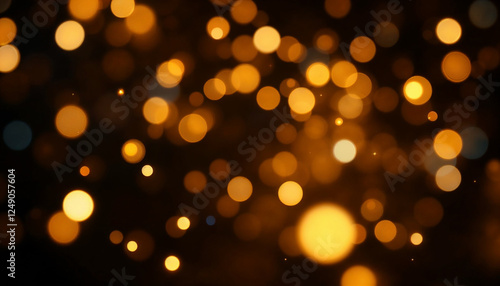 Un fondo oscuro lleno de orbes brillantes dispersos en varios colores, incluidos dorado, naranja y azul, que crean un efecto bokeh