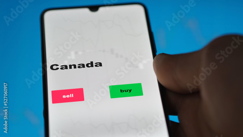 Un investisseur analyse le fonds FNB Canada à l'écran. Un téléphone affiche les prix de l'ETF canadien canada canadien à investir, texte en anglais.