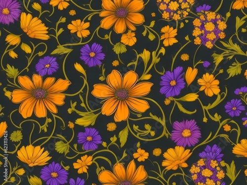 Un patrón de flores silvestres detallado vibrante