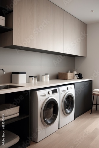 Uncluttered minimalist laundry room with clean lines AI generated illustration