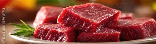 Undercooked meat with improper cooking and bad digestion concept. Fresh raw meat cuts elegantly arranged on a plate.