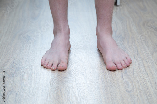 Underfloor heating in the apartment.A man is standing on a warm floor.