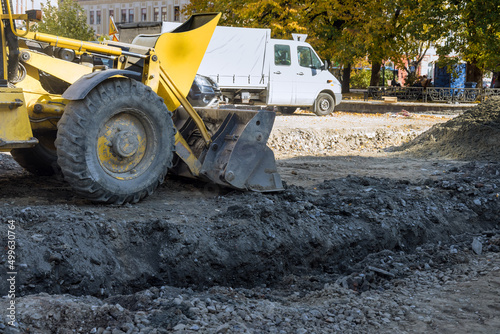 Underground drainage works of laying drainage pipes into the ground an renovation road