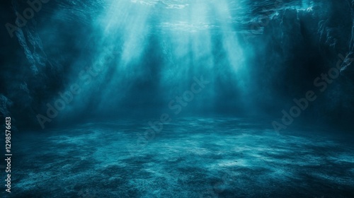 Underwater Cave with Light Rays and Mysterious Blue Atmosphere
