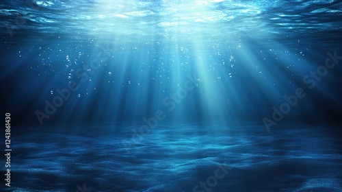 Underwater ocean scene, sunbeams, bubbles, deep sea, background texture, design