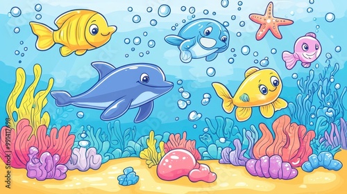 Underwater Paradise: Colorful Fish and Dolphins in a Vibrant Coral Reef