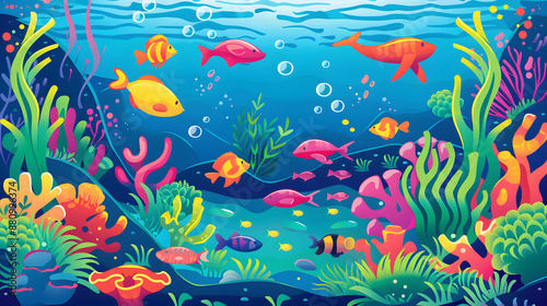 Underwater scene in a flat design style cartoon children illustration
