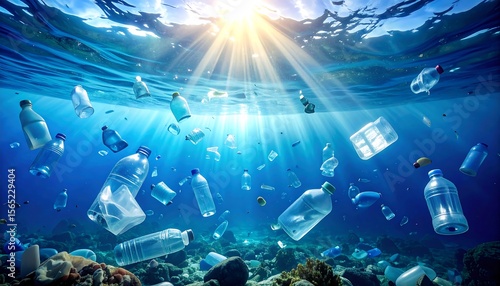 Underwater Scene numerous Plastic Bottles And Debris Of Varying Shapes .Jpg