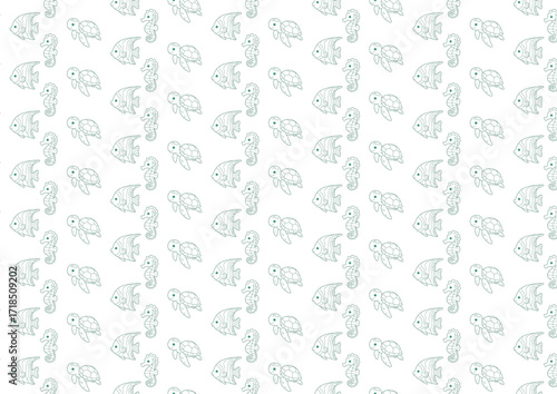 Underwater Sea Life Seamless Pattern with Fish and Turtles Printable Digital Design