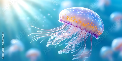Underwater serenity glowing jellyfish school ocean depths nature photography calm environment close-up view tranquil concept