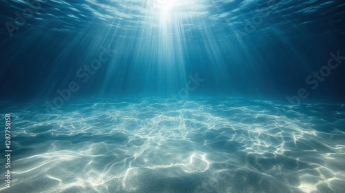 Underwater Tranquility Sunlit Seabed Scene with Azure Water and Gentle Ripples in a Serene Marine Environment Captured from a Low Angle
