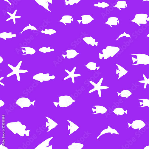 Underwater world in deep ocean. Silhouette of different fishes. Seamless vector EPS 10