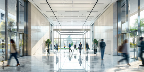 unfocused business people walking in a modern office, in a rush hour.