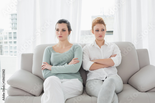 Unhappy friends not talking after argument on the couch
