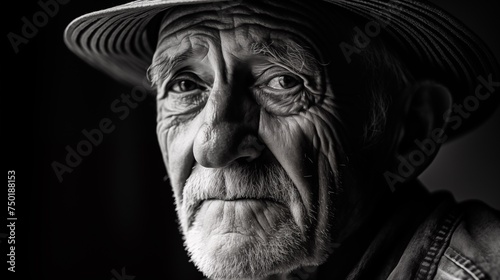 Unhappy sad senior old man portrait , black and white shoot. Mature retirement concept. Dignifield old age
