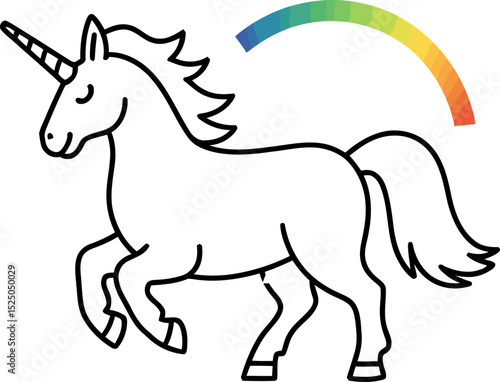 Unicorn drawing magical creature rainbow horn fantasy equine mythical animal line art illustration art editable stock vector illustration