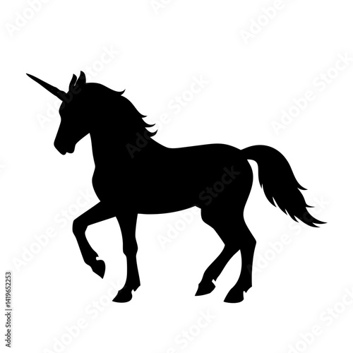 Unicorn silhouette vector illustration mythical creature horse fantasy animal design graphic art black and white drawing