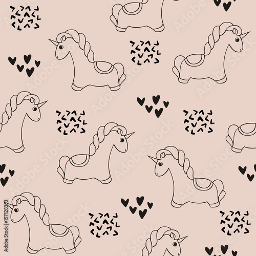 Unicorn. Vector seamless pattern with unicorns. Cute decorative background for design and decoration
