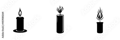 Unique collection of flat black candle icons showcasing different styles and shapes for creative designs and projects