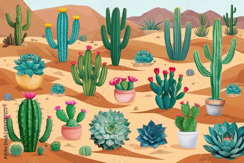 Unique Handcrafted Cacti and Succulent Art Surrounded by Desert Sands