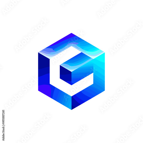 Unique hexagonal logo design with a gradient of blue shades representing innovation and creativity in branding solutions for modern businesses