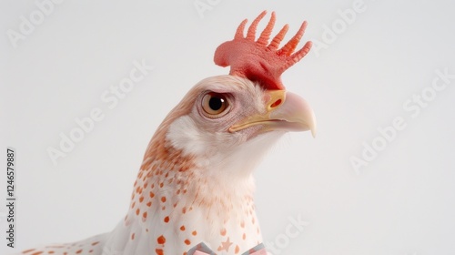 Unique hybrid bird with chicken features and detailed plumage isolated on a white background showcasing its majestic presence