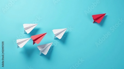 Unique Leadership Red Paper Airplanes Leading the Way, Symbolizing Innovation and a Bold Departure from the Traditional Path