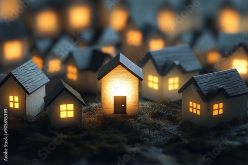 Unique light house sign in a group of houses