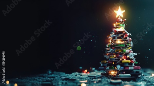 Unique Medical Christmas Tree Design, Created with Healthcare Supplies and Bright Star Topper, Innovative Holiday Decoration for Modern Concepts, Ai Generation