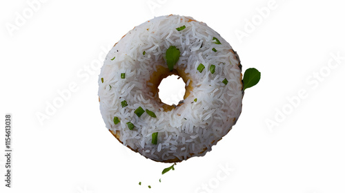Unique Rice Krispie Doughnut with Fresh Herbs isolated on white background