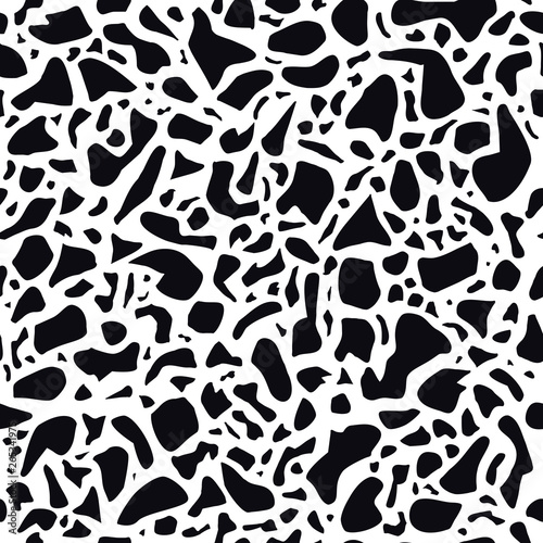 Unique terrazzo flooring vector seamless pattern in black and white. Texture composed of natural stone, glass, quartz, concrete, marble, quartz. Background