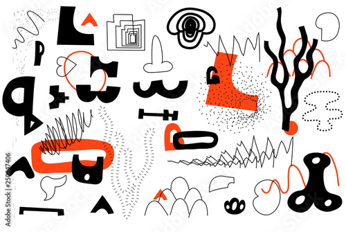 Unique Trendy Artistic Collection Of Abstract Shapes In Handmade Technique. Bright bold design elements Set for Motion, Animation, Magazine, Billboard etc