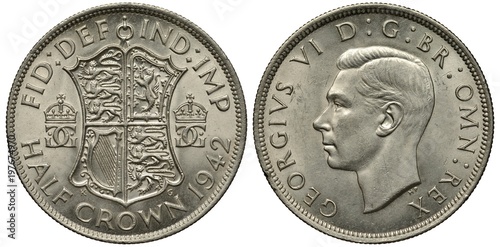 United Kingdom British silver coin 1/2 half crown 1942, WWII issue, shield with lions and harp flanked by crowned monograms, head of King George VI left,